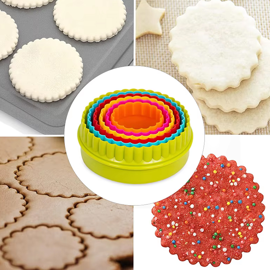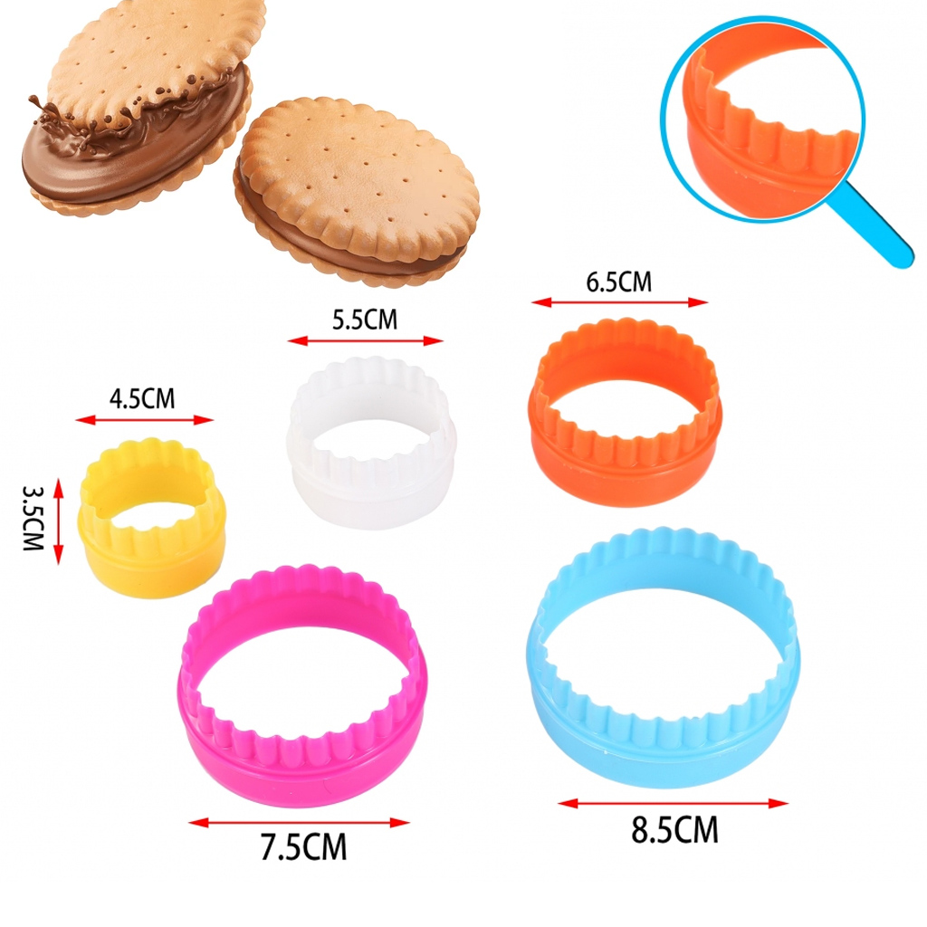 ➡️ Stwórz idealnie kształtne ciasteczka i ciastka kanapki dzięki naszemu zestawowi wykrawaczek! Nasze foremki są wykonane z wysokiej jakości, trwałego plastiku i posiadają ząbkowane brzegi, co umożliwia uzyskanie estetycznych falistych krawędzi. Zestaw składa się z 5 okrągłych foremek o różnych rozmiarach, idealnych do wypieków, ciasteczek maślanych, pierniczków, a nawet dekoracyjnych kanapek. Foremki są lekkie, łatwe w użyciu oraz bezpieczne w kontakcie z żywnością.