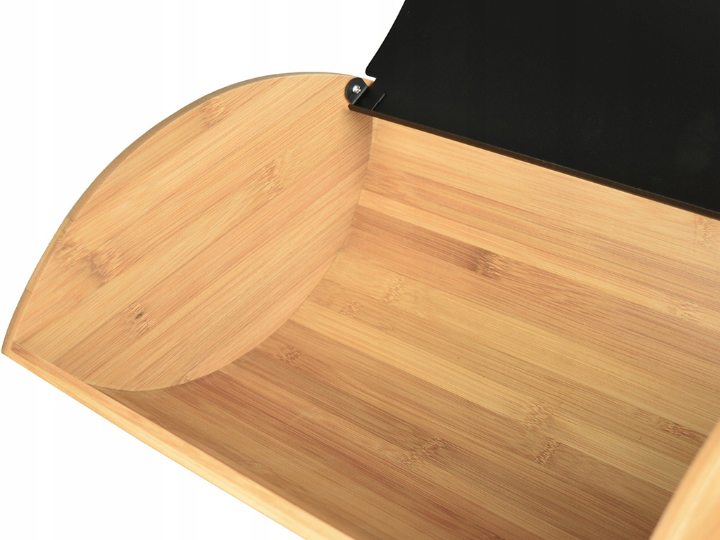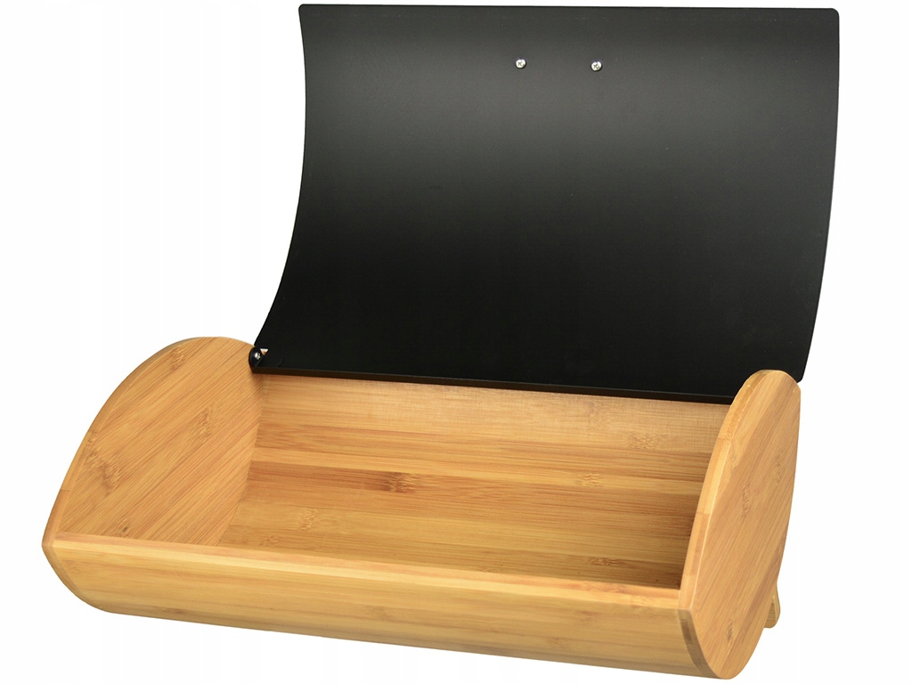 Chlebak posiada głęboki pojemnik na pieczywo, zamykana klapka została wykonana ze stali malowana proszkowo na czarny kolor, dodatkowo została wyposażona w uchwyt do otwierania i zamykania.