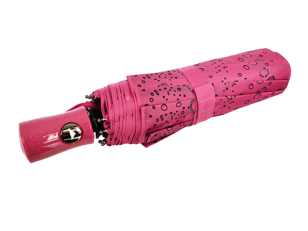 Wysokiej jakości parasol damski z mechanizmem automatycznego otwierania. Złożony parasol ma jedynie 30 cm długości, przez co mieści się z łatwością w torebce, plecaku lub w schowku samochodowym. Solidny stelaż składający się z dziewięciu mocnych drutów, wykonanych z lekkich stopów oraz plastiku, dzięki czemu generuje wysoką wytrzymałość.