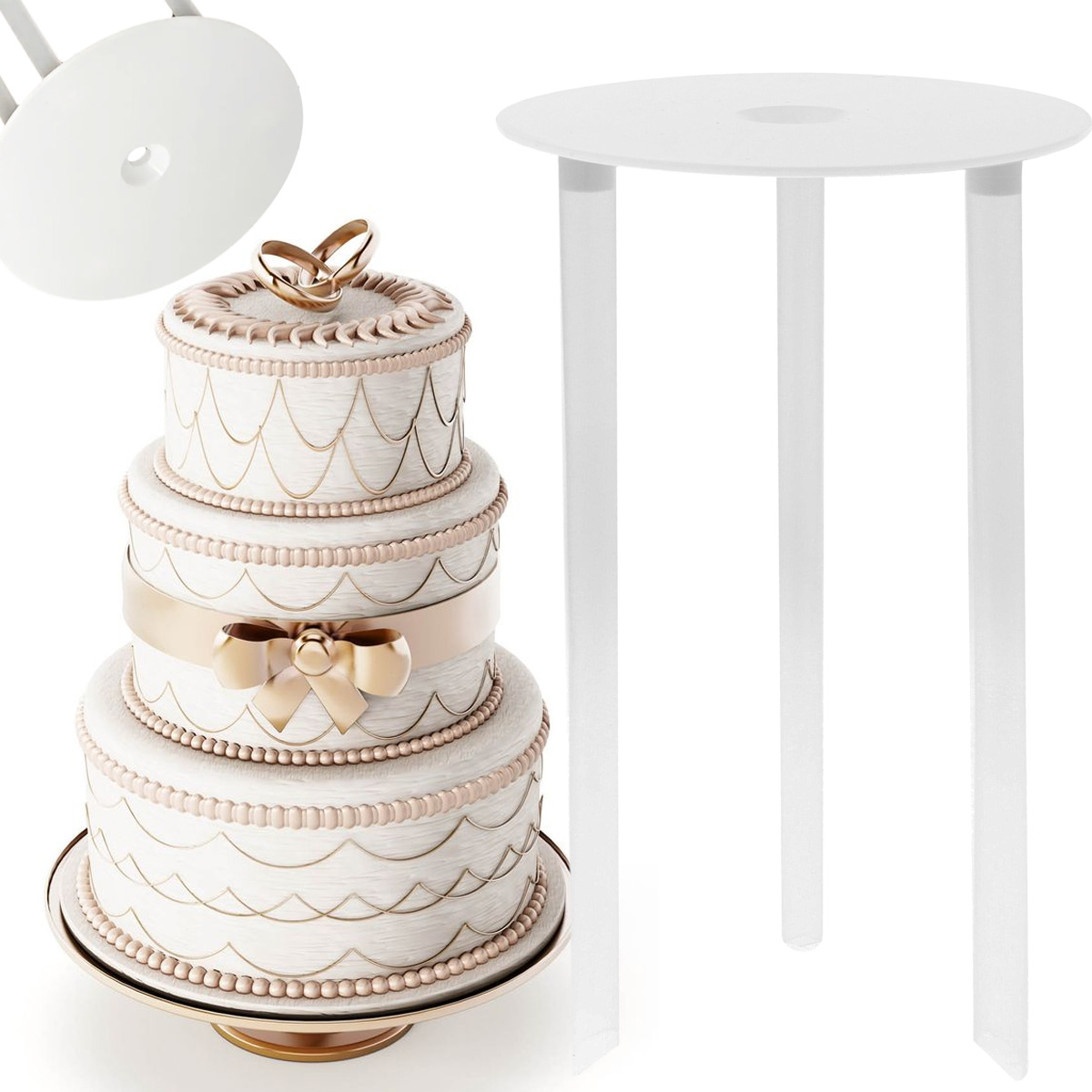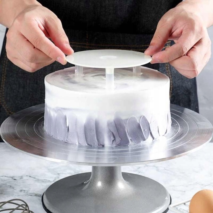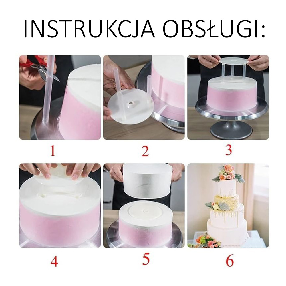 ✔️Specjalnie opracowana podkładka wraz z zestawem wsporników do tortów wielowarstwowych i w stylu angielskim.